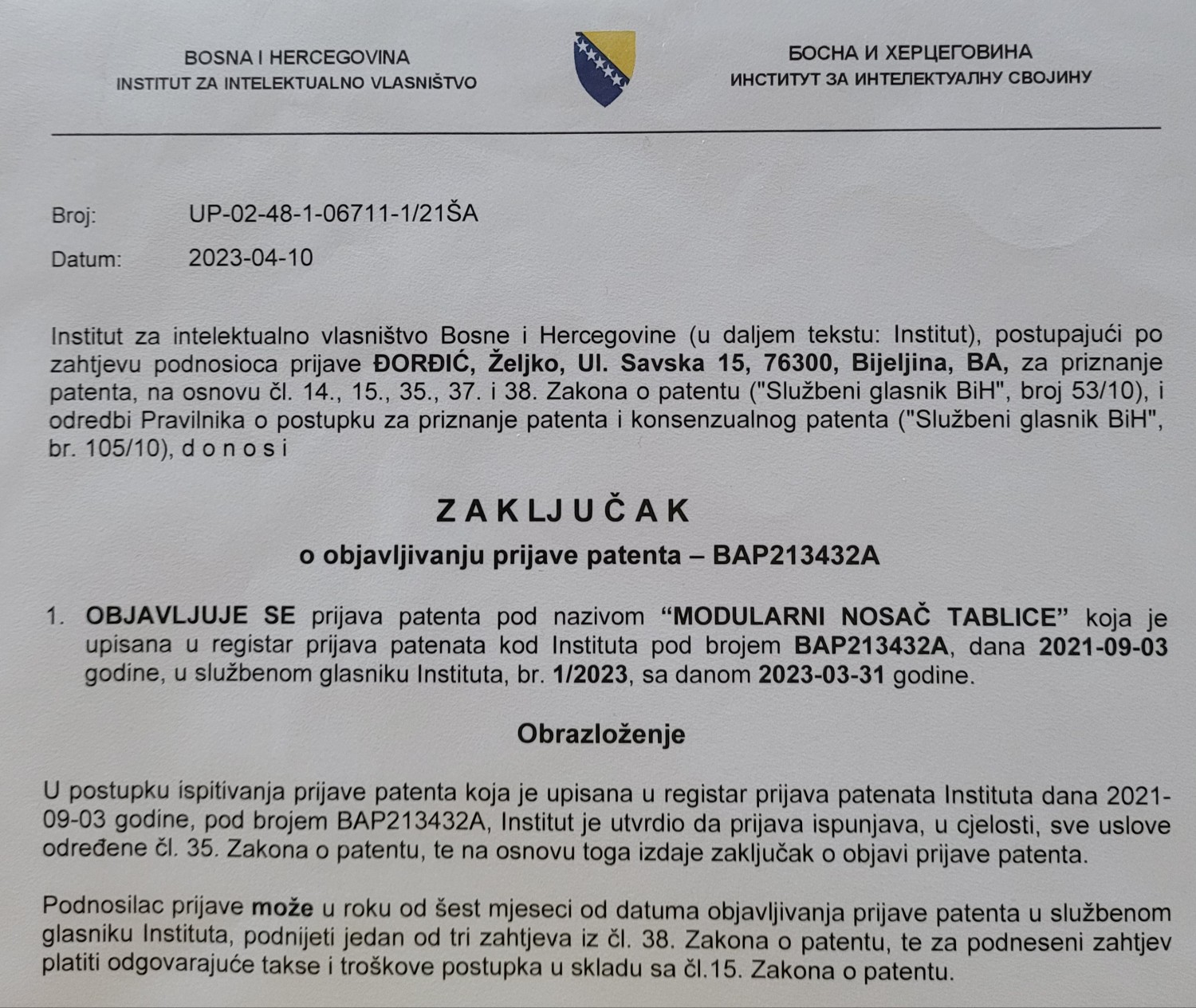 Patentiran proizvod.
